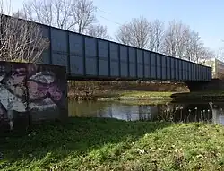 Neben der Stephansbrücke überquert die Eisenbahnstrecke Herford–Altenbeken die Aa.