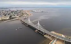 - ZSD, Westliche Umgehungsautobahn mit Brücke über den Korabelny-Kanal[6] in die Finnl. Bucht der Ostsee vor St. Petersburg (früher Leningrad).