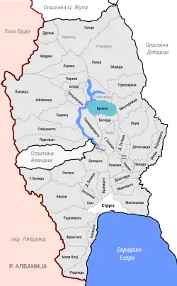 ![]() Karte mit Lage des Dorfes innerhalb der Gemeinde Struga (mazedonisch-kyrillisch) | |||||