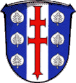 Blasonierung: „In Blau ein silberner mit einem roten Patriarchenkreuz belegter Pfahl, beiderseits von je drei silbernen Lindenblättern begleitet (1:1:1).“[12] |