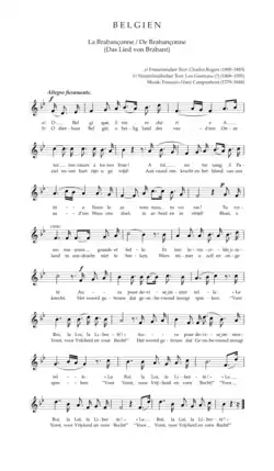 - ↑ Amtliche deutsche Fassung der belgischen Nationalhymne.