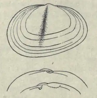 Die gleichklappigen Gehäuse sind im Umriss quer-eiförmig. Die Gehäuse werden max. acht Millimeter lang, die meisten Exemplare werden aber nicht größer als drei Millimeter (Holotyp: 5,3 mm lang, 3,5 mm hoch und 1,8 mm dick). Das Breiten- zu Höhenverhältnis beträgt etwa 1,4 bis 1,5. Die Gehäuse sind leicht ungleichseitig, die Wirbel sitzen etwas vor der Mitte der Gehäuselänge. Der Dorsalrand ist gebogen, der Ventralrand ist annähernd gerade. Das vordere Ende ist etwas enger gerundet als das hintere Ende.