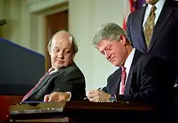 Bill Clinton unterzeichnet den Brady Act in Anwesenheit von James Brady