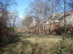 Von der Niederhavel gegenüber dem heutigen Heinrich-Heine-Ufer abgehend, zogen sich zwei annähernd parallele Gräben bis zum Plauer oder Luckenberger Tor und unterquerten die dem Tor vorgelagerte Brücken- und Wehranlage. Dieser Abschnitt wurde zwischen 1840 und 1850 trockengelegt und verfüllt. Man bepflanzte das Gebiet, das von nun an Johannispromenade oder Ratzenwall genannt und in einem engen Bereich entlang des Mauerzuges im 19. Jahrhundert von Tuchmachern zum Aufstellen ihrer Tuchrahmen genutzt wurde. 1869 wurde dieses Gebiet anlässlich des 100. Geburtstages von Alexander von Humboldt Humboldthain genannt und ist heute ein Standort und Lehrpfad für seltene und exotische Gehölze. Die von Grasow erwähnte Büste Humboldts, die 1869 dort aufgestellt wurde, ist verschollen. Das nebenstehende Bild zeigt im Hintergrund den Marien- oder Harlungerberg, der auf seiner Kuppe die Station Nr. 7 des Preußischen optischen Telegraphen trägt. Unterhalb der Telegrafenstation ist die dem Plauer oder Luckenberger Tor vorgelagerte Torbrücke sichtbar. Der Plauer oder Luckenberger Torturm steht als Turmstumpf am rechten oberen Bildrand.