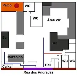 Der Nachtclub Kiss befindet sich im Zentrum der Stadt in der Rua dos Andradas 1955. Der Veranstaltungsraum des Clubs hatte eine Kapazität von 2000 Personen.[5] Nach Angaben mancher brasilianischer Medien war er aber nur für maximal 1000 Personen ausgelegt.[5] Zum Zeitpunkt des Unglücks waren nach Polizeiangaben rund 900 Menschen im Nachtclub.[6]