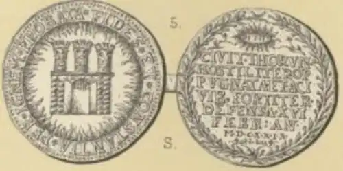- ↑ August Brause-Mansfeld: Feld-, Noth- und Belagerungsmünzen … (1897), S. 54: Thorn 1629.