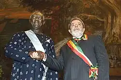 Ghanas Präsident John Kufuor empfängt seinen brasilianischen Amtskollegen Lula da Silva zum Staatsbesuch (2005).