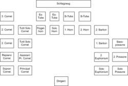 Die heute übliche Besetzung einer Brassband besteht aus folgenden Stimmen bzw. Instrumenten: