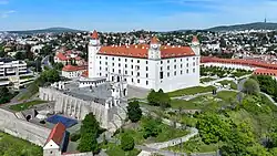 Das Wahrzeichen der Stadt ist die Bratislavaer Burg. Das Wappen der Stadt zeigt eine fiktive dreitürmige Burg in Silber auf rotem Grund.