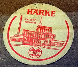 Historischer Bierdeckel der Brauerei Härke mit der Darstellung des Brauereigebäudes