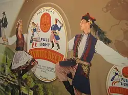 Im Logo sind drei Tannen der Schlesischen Beskiden und ein tanzendes Paar in Volkstrachten. Ursprünglich trug das Paar die Trachten der Saybuscher Góralen. Der amerikanische Importeur des Biers erzwang jedoch in den 1950 die Änderung in die Krakauer Tracht, da diese in den USA bekannter und eindeutig mit Polen assoziiert wurde, wohingegen die Saybuscher Tracht weitgehend unbekannt gewesen sei.