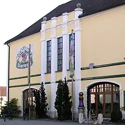 Ab circa 1920 wurde der Brauereibetrieb aus Platzgründen in die Römerstraße verlegt, wo sich der zur Brauerei gehörige Gutshof befand.[9] Am Stadtplatz blieb der Brauereigasthof zum Kuchlbauer weiter in Betrieb.
