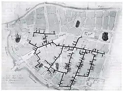 1830 hatte das Netz eine Gesamtlänge von 3160 Metern. In den Häusern angeschlossen waren insgesamt 73 Sode, 117 Pumpen und 38 Steigsäulen, die etwa 1800 Haushalte mit Wasser versorgten.