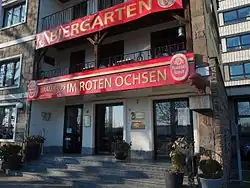 Nach der Zerstörung des Gebäudes im Zweiten Weltkrieg wurde die Gaststätte in den 1960er Jahren wieder aufgebaut und als „Brauhaus Im Roten Ochsen“ fortgeführt; sie gehörte zu den alten Brauhäusern Kölns.[1][2][3]