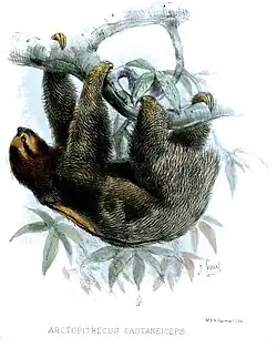 Historische Zeichnung des Braunkehl-Faultiers aus dem Jahr 1871