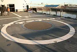 Der Hubschrauberlandeplatz am Heck ist 24 m lang und 12,6 m breit. Er ist für die Landung eines Hubschraubers der 12-t-Klasse[1] wie Westland Lynx oder NH90 ausgelegt. Der Hangar kann keine Hubschrauber aufnehmen, sondern ist nur für die Aufnahme ferngelenkter Aufklärungsdrohnen ausgelegt. Das Landedeck dient außerdem als Reservedeck für Hubschrauber anderer Schiffe, die an Bord betankt werden können, und zur Aufnahme von Seeminen auf montierbaren Minenschienen.[5][35][57]