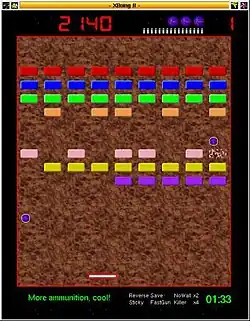 Breakout (auch bekannt unter dem Namen Little Brick Out) ist ein Spielhallenspiel, das zunächst 1976 von Atari als Arcade-Spiel produziert wurde. Damals war es noch schwarzweiß mit mehrfarbiger Overlayfolie und wurde als eines der letzten Spiele seiner Art komplett in Hardware realisiert.[1] Später wurde dieses Spiel auch für Computer programmiert und existiert seither auch als Software.