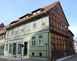 Das zweigeschossige Fachwerkhaus beinhaltet auf der Hofseite Teile eine Baus aus der Mitte des 16. Jahrhunderts. Dort finden sich als Verzierungen der Fachwerkfassade walzenförmige Balkenköpfe, Schiffskehlen, sowie Fächerrosetten an Fußwinkelhölzern. Die nach Osten ausgerichtete straßenseitige Fassade sowie der Giebel wurden in der Zeit um 1780 erneuert. Das Erdgeschoss ist zur Straße hin in massiver Bauweise ausgeführt.