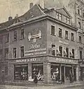 | 257 (alt) | Im Jahr 1880 wurde das zum Block 26 des Stadterweiterungsgebiets gehörende Eckrundstück durch F. Gensicke bebaut. Es entstand ein viereinhalbgeschossiges Wohn- und Geschäftshaus mit einer abgestumpften Ecke. Die Fassade wurde durch Eckrisaliten geprägt. Das Erdgeschoss wurde 1886 und 1907 umgebaut. Eigentümer war 1886 der Kaufmann August Jordan, 1907 dann die Witwe M. Puff, 1914 die Puffschen Erben. Im Jahr 1925 und auch noch 1938 gehörte es dem Wiener Kaufmann F. Haas. 1935 wurde das zweite Obergeschoss umgebaut. 1940 war der Kaufmann O. Warnecke, Inhaber der Küchengeräte-Firma P. Goerke. Im Zweiten Weltkrieg wurde das Haus total zerstört. Ein im Januar 1946 gestellter Antrag auf Wiedereinrichtung einer Verkaufsstelle der Firma Goerke wurde abgelehnt. | ||