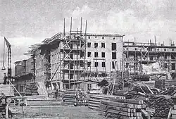 | 271 (alt) | Auf der Parzelle K des Blocks 19 des Stadterweiterungsgebiets wurde 1879 vom Maurermeister A. Schweitzer ein fünfeinhalbgeschossiges Wohn- und Geschäftshaus mit sechsachsiger Fassade errichtet. 1888 gehörte es dem Bäckermeister C. Radestock, der Umbauten vornahm. Er war auch noch 1902, nun als Privatmann bezeichnet, Eigentümer. 1912 erfolgte ein Ladenumbau durch die damalige Eigentümerin Elisabeth Keßler. 1925 war Gen.-Ob. Veterinär a. D. Fr. Bierstedt Eigentümer, 1938 und 1940 Frau E. Bierstedt. | ||