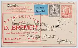 Wie das Schwesterschiff Europa hatte auch die Bremen auf dem oberen Deck zwischen den beiden Schornsteinen ein Katapult mit einem Wasserflugzeug, das der schnelleren Postbeförderung diente. Zunächst hatte sie die einzige je gebaute Heinkel HE 12 an Bord, die auf der Jungfernfahrt am 22. Juli 1929 erstmals für diesen Zweck einen Katapultstart Richtung New York durchführte.[4] Diese verunglückte am 5. Oktober 1931, wobei beide Insassen starben. 1932 erhielt die Bremen die (ebenfalls einzige je gebaute) Heinkel HE 58; diese war zuvor auf der Europa eingesetzt worden. Von 1933 bis 1935 hatte sie eine Junkers Ju 46 an Bord.