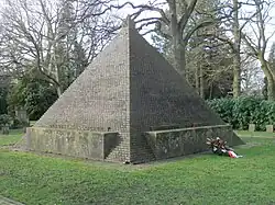Im hinteren Teil des Friedhofs wurde 1919 zu Ehren der Gefallenen des Ersten Weltkrieges eine auffällig große Pyramide aus Backsteinziegeln errichtet (Feld 18e, →Lage). In der näheren Umgebung befinden sich weitere Gräber von Gefallenen beider Weltkriege und auch ein Ehrenmal für die Gefallenen des Zweiten Weltkrieges, welches allerdings eher unauffällig ist. Auf einer weiteren daran angrenzenden Grünfläche befindet sich der Urnenhain (Feld 18b). Auch in der näheren Umgebung steht das Ehrenmal für die Opfer des Sprengstoffanschlags auf das Schiff Mosel, auch als Thomas-Katastrophe bekannt (Feld 15, →Lage). Laut Inschrift wurden hier 43 der insgesamt 83 Opfer bestattet. Auch der Körper des Attentäters William King Thomas soll nach einer Notiz auf dem Friedhof an einer anderen Stelle und ohne Grabstein bestattet worden sein. Sein abgetrennter Kopf befand sich bis 1945 im Bremer Kriminalmuseum und wurde bei einer Explosion vernichtet.