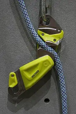 - ↑ Jan Hoffmann, Sebastian Straub, James Heath: Sicherungsgeräte-Fibel. Edelrid: Isny im Allgäu, 2. Aufl. 2017.