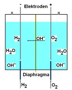 Eine Brennstoffzelle besteht aus Elektroden, zwischen denen sich ein Elektrolyt (Ionenleiter) befindet. Als Elektrolyt kann eine Flüssigkeit, beispielsweise Laugen oder Säuren, oder Alkalicarbonatschmelzen verwendet werden. Bei Hochtemperaturbrennstoffzellen wird ein Feststoff als Elektrolyt verwendet, etwa ionenleitende Keramik, die dann einen Festelektrolyten bildet. Auch Membranen werden genutzt. Sie sind semipermeable Membranen, die nur für eine Ionensorte, z. B. Protonen, durchlässig sind. Eine Membran kann auch zwei verschiedene flüssige Elektrolyte voneinander trennen.