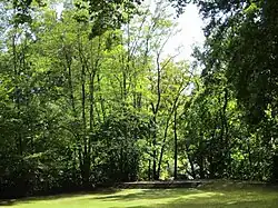 Der Pavillon mit dem Rosengarten, heute ein markanter Punkt des Parks, wurde 1931 nach Plänen von Eugen Kaufmann (1892–1984) als Teil des Projekts Neues Frankfurt errichtet.[4] Weitere bemerkenswerte Orte im Park sind das Kriegsopferdenkmal und das Denkmal für die 1938 zerstörte Rödelheimer Synagoge. Heute ist der Park mit seinem alten Baumbestand ein Erholungsort. Eine Besonderheit ist der etwa 260 Jahre alte Ginkgo-Baum, der auch „Goethe-Ginkgo“ genannt wird, weil ihn der Dichter Johann Wolfgang von Goethe besonders geschätzt haben soll.[5] Im Jahr 2007 wurde mit der Sanierung des Parks begonnen, bei der einige Bereiche umgestaltet wurden, um die ursprüngliche Bepflanzung und Wegführung wiederherzustellen. Im Park steht eine Stieleiche mit einem Brusthöhenumfang von 6,84 m (2015).[6] Nähere Informationen über die Baumbestände (Art und Pflanzdatum) gibt es online im Baumkataster Frankfurt.[7]