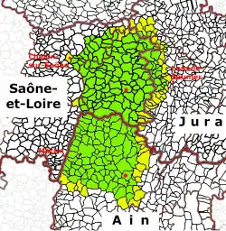 - ↑ Produktionsgebiet Volaille de Bresse. auf INAO L’Institut national de l’origine et de la qualité. Abgerufen am 4. Juli 2015 (französisch).