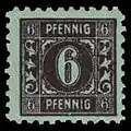 - Bild: Eine bearbeitete Abbildung der genannten Marke. Das Verhältnis der Größe der Briefmarken zueinander ist in diesem Artikel annähernd maßstabsgerecht dargestellt.