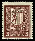 Als West-Sachsen wird in der Philatelie die Briefmarkenausgaben, die westlich der Elbe sowie Mulde und der Zwickauer Mulde gelegene Teil der vormaligen Reichspostdirektion Leipzig[1] bezeichnet. Dieser Bereich war bis zum 30. Juni 1945 amerikanisch besetzt gewesen und es fand kein Postverkehr statt. Erst unter der sowjetischen Besatzung begann dieser am 23. Juli 1945 in Leipzig und wurde allmählich wieder aufgenommen. Am 6. August 1945 wurden Postkarten und Briefe nach der gesamten Sowjetischen Besatzungszone zugelassen. Die ersten Briefmarken erschienen am 28. September 1945 bis dahin wurde Barfrankierung durchgeführt.[2]