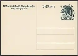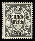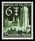 Mit Beginn des Zweiten Weltkrieges am 1. September und der Wiedereingliederung der Stadt Danzig ins Deutsche Reich wurden am 28. September 14 ursprüngliche Werte der Freien Stadt Danzig mit Aufdruck herausgegeben. Bereits am 18. September gab es im Reich zwei Sondermarken, die auf das Ereignis „Danzig ist Deutsch“ hinwiesen, was eine eindrucksvolle Leistung wäre, wenn die Vorbereitungen für Entwurf und Druck erst nach Kriegsausbruch begonnen haben sollten.[1]