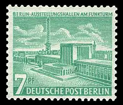 - ↑ Ein Wert der Serie Berliner Bauten (II) war bereits 1953 erschienen, darum zählt diese Marke philatelistisch zum Jahrgang 1953; vgl. Michel Deutschland-Spezial 2023. Band 2: Ab Mai 1945 (Alliierte Besetzung bis Bundesrepublik Deutschland). Schwaneberger Verlag, Germering 2023, ISBN 978-3-95402-442-1, S. 662.