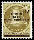 - ↑ Der Satz der Berliner Bauten wurde, wie zu der Zeit üblich, auf normalem Papier mit Wasserzeichen gedruckt. Die 1-Pfennig-Briefmarke wurde jedoch sehr lange gedruckt und ab 1962 dann auch auf fluoreszierendem Papier ohne Wasserzeichen. Sie wurde ab 20. Juli 1960 auch in Westdeutschland verkauft und war besonders lange gültig. Es wurde empfohlen, als äußeres Merkmal zur Verbundenheit mit Berlin diese Marke zusätzlich zur normalen Frankatur mit auf die Postsendungen aufzukleben.