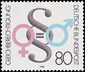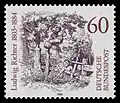 - Bild: Eine bearbeitete Abbildung der genannten Marke. Das Verhältnis der Größe der Briefmarken zueinander ist in diesem Artikel annähernd maßstabsgerecht dargestellt. Sollten keine Marken abgebildet sein, liegt es daran, dass das Urheberrecht des Künstlers noch nicht erloschen ist.