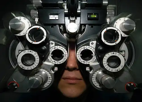 In der Regel ist danach eine weitere Untersuchung der subjektiven Refraktion notwendig, um die endgültigen Brillenwerte zu bestimmen. Dies geschieht mit einem Phoropter, seltener mit den früher üblichen Probiergestellen. Sollte zudem eine Prismenverordnung notwendig sein, werden für die Ermittlung der Prismenstärke und Basislage weitere spezielle Untersuchungen durchgeführt.[43]