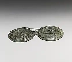 Die Brillenfibel ist eine bronzene Gewandspange zum Zusammenhalten der Kleidung. Die Benennung der Fibel ergibt sich aus den beiden spiralförmigen Zierelementen, welche an große Brillengläser erinnern.