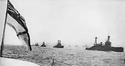 Die neue Weltordnung, die der Krieg hervorgebracht hatte, insbesondere der Bedeutungszuwachs Japans und der Vereinigten Staaten als Seemächte sowie Unabhängigkeitsbewegungen in Indien und Irland, hatten eine grundlegende Neuausrichtung der britischen imperialen Politik zur Folge. Großbritannien entschloss sich, die Allianz von 1902 mit Japan nicht zu erneuern, und unterzeichnete 1922 stattdessen das Washingtoner Marineabkommen, das die Parität der britischen und US-amerikanischen Flotte festschrieb.[68] Diese Entscheidung löste in den 1930er Jahren zahlreiche Debatten aus, da als Folge der Weltwirtschaftskrise in Deutschland und Japan faschistisch-militaristische Regimes die Macht an sich rissen.[69] In Regierungskreisen befürchtete man, das Empire werde einem gleichzeitigen Angriff beider Länder nicht standhalten können.[68] Darüber hinaus wurde das Empire für die Wirtschaft Großbritanniens immer wichtiger. Während der Zwischenkriegszeit wuchs der Anteil der Exporte in die Dominions und Kolonien von 32 auf 39 Prozent, der Anteil der Importe von 24 auf 37 Prozent.[70]