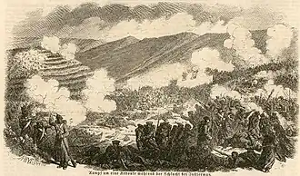 Während des 19. Jahrhunderts strebten Großbritannien und Russland danach, das Machtvakuum in Zentralasien auszufüllen, das durch die Schwächung des Osmanischen Reiches, der persischen Kadscharen-Dynastie und der chinesischen Qing-Dynastie entstanden war. Diese Rivalität ist als The Great Game („Das Große Spiel“) bekannt.[49] Aus britischer Sicht waren die errungenen Siege im Russisch-Persischen Krieg (1826–1828) und im Russisch-Türkischen Krieg (1828–1829) ein klares Zeichen für die imperialen Ambitionen und Möglichkeiten der Russen, sie weckten auch die Angst vor einer Invasion Indiens auf dem Landweg. 1839 versuchte Großbritannien, diesem Ziel mit der Eroberung Afghanistans zuvorzukommen. Diese endete drei Jahre später mit einer der verheerendsten Niederlagen des viktorianischen Zeitalters, als die britische Invasionstruppe 1842 beim Abzug aus Kabul durch paschtunische Stämme, die mit russischen Waffen ausgerüstet waren, fast vollständig vernichtet wurde.[55] Der Zweite Anglo-Afghanische Krieg führte 1880 zu einer verheerenden Niederlage bei Maiwand, der Belagerung Kabuls durch die Afghanen und dem britischen Rückzug nach Indien. Nach dem Dritten Anglo-Afghanischen Krieg von 1919 musste Großbritannien die Souveränität Afghanistans endgültig anerkennen.