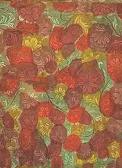 - ↑ Albert Haemmerle: Verzeichnis von Brokatpapieren. In: ders.: Buntpapier. Herkommen, Geschichte, Techniken, Beziehungen zur Kunst. Unter Mitarb. von Olga Hirsch. Veränd. u. erw. Nachdruck. Callwey, München 1977, S. 206, [Nr.] 118.