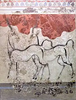 - ↑ Friedrich W. L., Kromer B., Friedrich M., Heinemeier J., Pfeiffer T., Talamo S. (2006): Santorini eruption radiocarbon dated to 1627–1600 BC. In: Science 312 (5773), S. 548–548; doi:10.1126/science.1125087. Trotz dieser aktuell wissenschaftlich validen Altersbestimmung sind weitere Datierungen in der Diskussion (Tabelle Datierung der Minoischen Eruption). Damit hat eine valide Neudatierung der minoischen Eruption auch starke Auswirkungen auf die Chronologie vor allem des östlichen Mittelmeerraums und Vorderasiens.