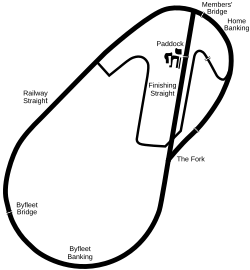 Die Gesamtlänge der Rennstrecke inklusive der Zielgeraden betrug 5,2 Kilometer (3,25 Meilen), 3,2 Kilometer davon waren ebene Strecke, alles rund 30 Meter breit. Die längere der Steilkurven, Byfleet Banking, hatte einen mittleren Radius von 472 Meter, war rund sechs Meter hoch und hatte eine Überhöhung von fünf Metern. Diese lang gestreckte Kurve senkte sich ab, bevor die Strecke den River Wey überquerte und sich an der „Fork“ teilte: Links die Zielgerade, rechts stieg der Kurs wieder an in Richtung der kürzeren Members Banking, die einen mittleren Radius von 305 Meter hatte, 8,50 Meter hoch war und eine Überhöhung von zehn Metern hatte, bevor sie in eine flache Gerade überging, die entlang der Eisenbahnlinie („Railway Straight“) wieder zum Byfleet Banking führte.