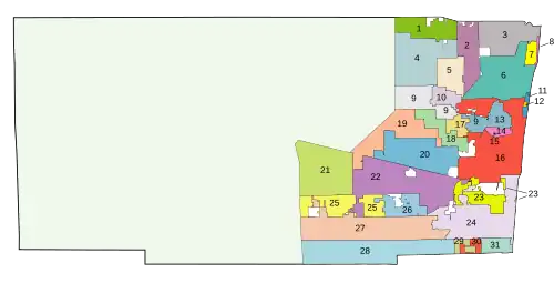 Broward County hat 31 Cities (die einwohnerstärksten sind Fort Lauderdale, Pembroke Pines, Hollywood, Coral Springs, Miramar und Pompano Beach), Towns und Villages. Hinzu kommen noch einige census-designated places, das gemeindefreie Gebiet Fern Crest Village sowie die Geisterstadt Andytown.