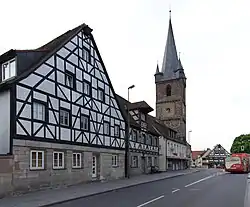Wichtigstes Wahrzeichen ist die evangelisch-lutherische Kirche St. Peter und Paul. Diese liegt im Zentrum des alten Dorfes direkt an der Regnitz. Der Baubeginn für diese Kirche lag im 13. Jahrhundert. Der 68 Meter hohe Chorturm besteht aus vier klar gegliederten Geschossen und ist mit einem achtseitigen Spitzhelm sowie vier Scharwachttürmchen versehen. Der ursprünglich spätromanische Bau wurde mehrfach verändert. Das kurze Langhaus weist gotische Elemente unter anderem am Nord- und Südportal auf. Der Innenraum ist durch die Barockisierung geprägt, die während der durch die nach dem Dreißigjährigen Krieg erforderlich gewordenen Instandsetzung 1726 vollendet wurde. Im Inneren der Saalkirche ergibt sich durch die Doppelempore von 1660, die Kanzel von 1680, das Kirchengestühl und die Chorschranken aus der Zeit um 1700 sowie der Stuck und das Deckengemälde von 1726/27 ein geschlossener Eindruck barocker Kirchenbaukunst.
