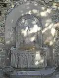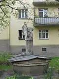 Brunnenbassin an einer Mauer | 1936 | Auf dem Bassin befindet sich das Fresko „Markgraf Leopold und seine Gemahlin Agnes bei der Übergabe der Kirche“. | ||