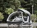 Brunnen mit Stahlskulpturen | Waltrud Viehböck | 1995 | Zwei separate Brunnenbecken, eines davon mit angrenzendem Pavillon. In und neben den Becken sind die Stahlskulpturen Neun Doppel-Ellipsen installiert. Mit der Umgestaltung der Wasserwelt 2017 weggefallen. |