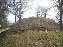- Burgstall östlich des Ortes oberhalb des alten Friedhofs, von der östlichen Vorburg sehr ausgeprägt durch einen Graben getrennt. Die Entstehungszeit ist unklar. Die Burg war vermutlich Sitz von Dienstleuten der Grafen von Neuffen. 1667 wurde sie zum Bau des Kapuzinerklosters in Weißenhorn abgetragen. Im Graben zwischen Vor- und Hauptburg befindet sich eine Mariengrotte