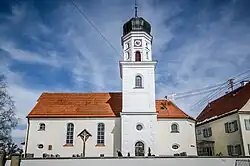 - Kirche St. Valentin: Bis 1781 stand die alte Pfarrkirche auf dem Gelände des heutigen (alten) Friedhofs. Neubau 1780 an jetziger Stelle. Frühklassizistisch mit Fresken von Konrad Huber