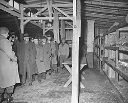 Als amerikanische Truppen in der Endphase des Zweiten Weltkrieges weiter auf das Gebiet des Deutschen Reiches vordrangen, wurden sie unvorbereitet, teilweise mitten in Kampfhandlungen, mit den Spuren der Gräuel in den Konzentrationslagern konfrontiert. Die Versorgung der größtenteils ausgemergelten und schwerkranken „Muselmänner“ sowie die Bestattung der auf den Todesmärschen durch Entkräftung oder Erschießung zu tausenden umgekommenen Häftlinge stellten die United States Army vor eine schwierige Aufgabe. Noch vor der Befreiung des KZ Buchenwald am 11. April 1945 hatten amerikanische Soldaten nach der Einnahme des Buchenwalder Nebenlagers Ohrdruf Fotografien erstellt, die die grauenhaften Umstände der Evakuierung dieses Lagers veranschaulichen.[3] Bereits am 12. April 1945 besichtigte der Oberbefehlshaber der alliierten Streitkräfte, Dwight D. Eisenhower, das Außenlager Ohrdruf des KZ Buchenwald und bat aufgrund der entsetzlichen Lagerzustände amerikanische und britische Politiker, Vertreter der Vereinten Nationen und die US-Presse zur Lagerbesichtigung.[4] Am 16. April 1945 mussten 1.000 Bürger aus Weimar auf Befehl des amerikanischen Kommandanten im KZ Buchenwald die noch vorhandenen Spuren des Massensterbens besichtigen; andernorts mussten Einwohner die Toten der Evakuierungsmärsche bestatten.[3]